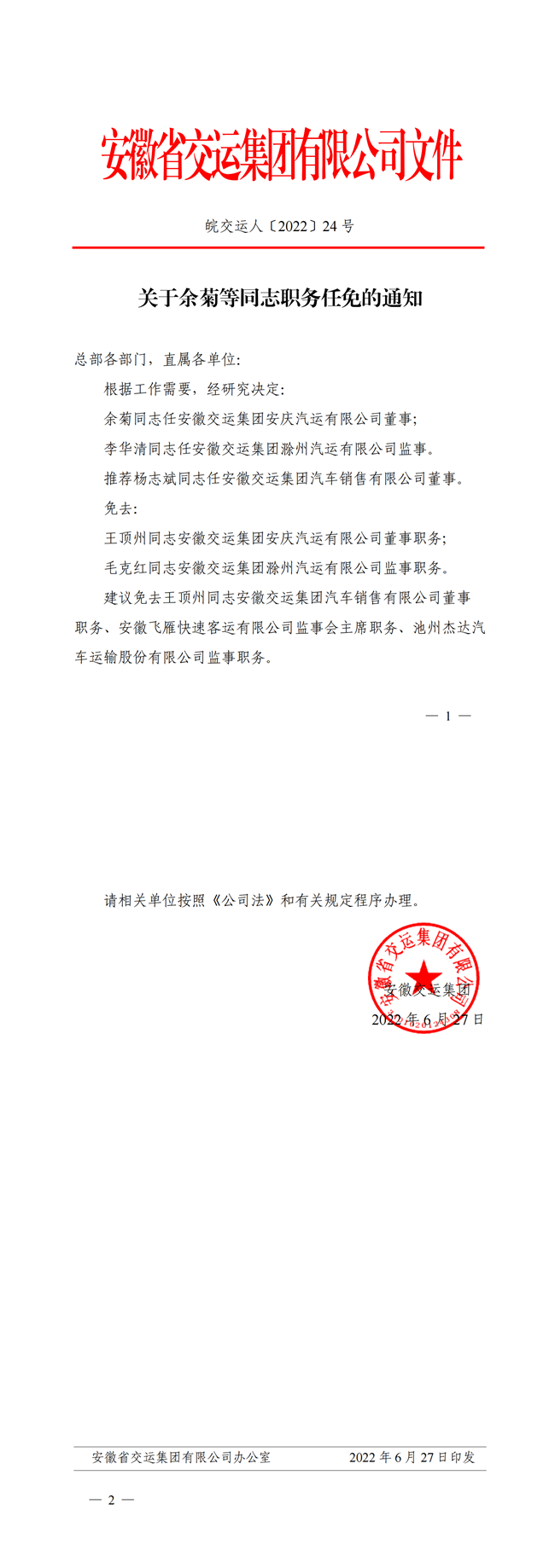 關于余菊等同志職務任免的通知